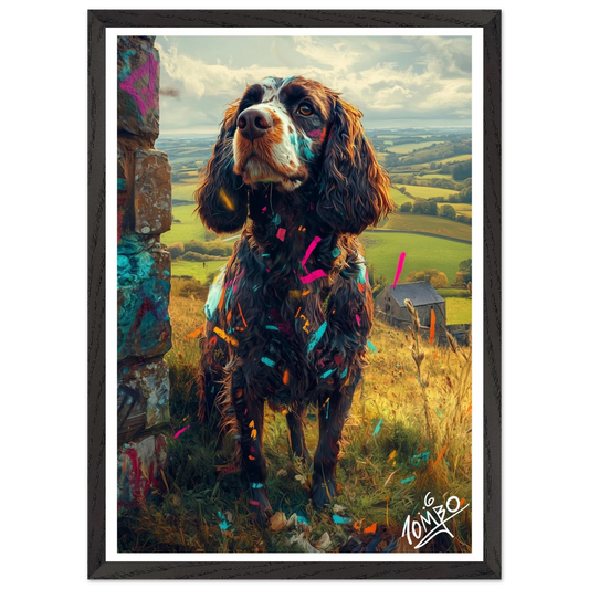 Spaniel Street Art Print With Oak Wood Frame - Colour in the Countryside
