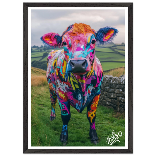 Cow Street Art Print With Oak Wood Frame - Colour in the Countryside
