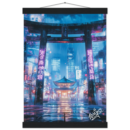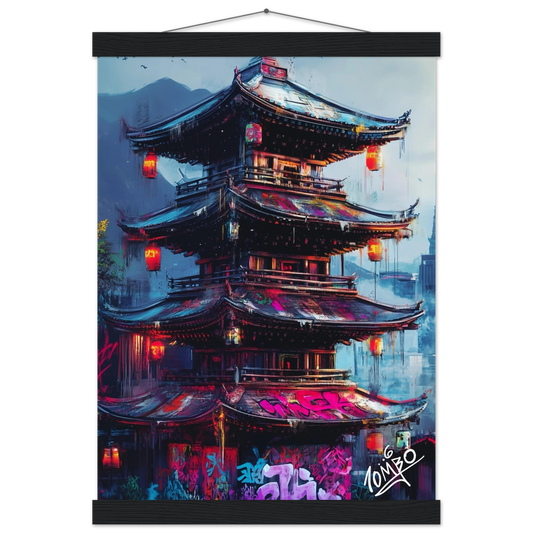 Japanese Street Art Print With Hanger - Urban Pagoda Z - Urban Graffiti Home Decor