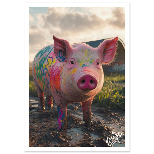 Greedy Pig Street Art Print - Colour in the Countryside