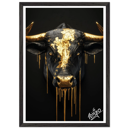 Black Bull With Gold Drip Art Print in Oak Wood Frame - Limited Edition April Exclusive