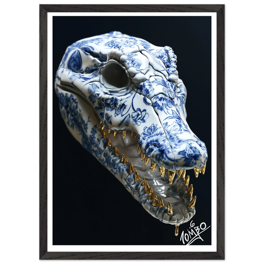 Croc With Floral Design and Gold Accents Art Print With Oak Wood Frame