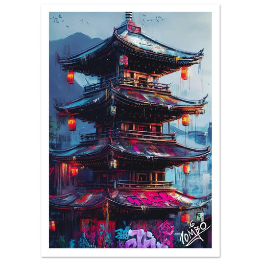 Japanese Street Art Print - Urban Pagoda Z - Urban Graffiti Home Decor